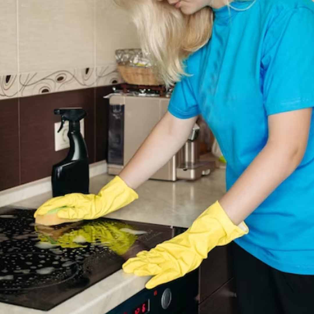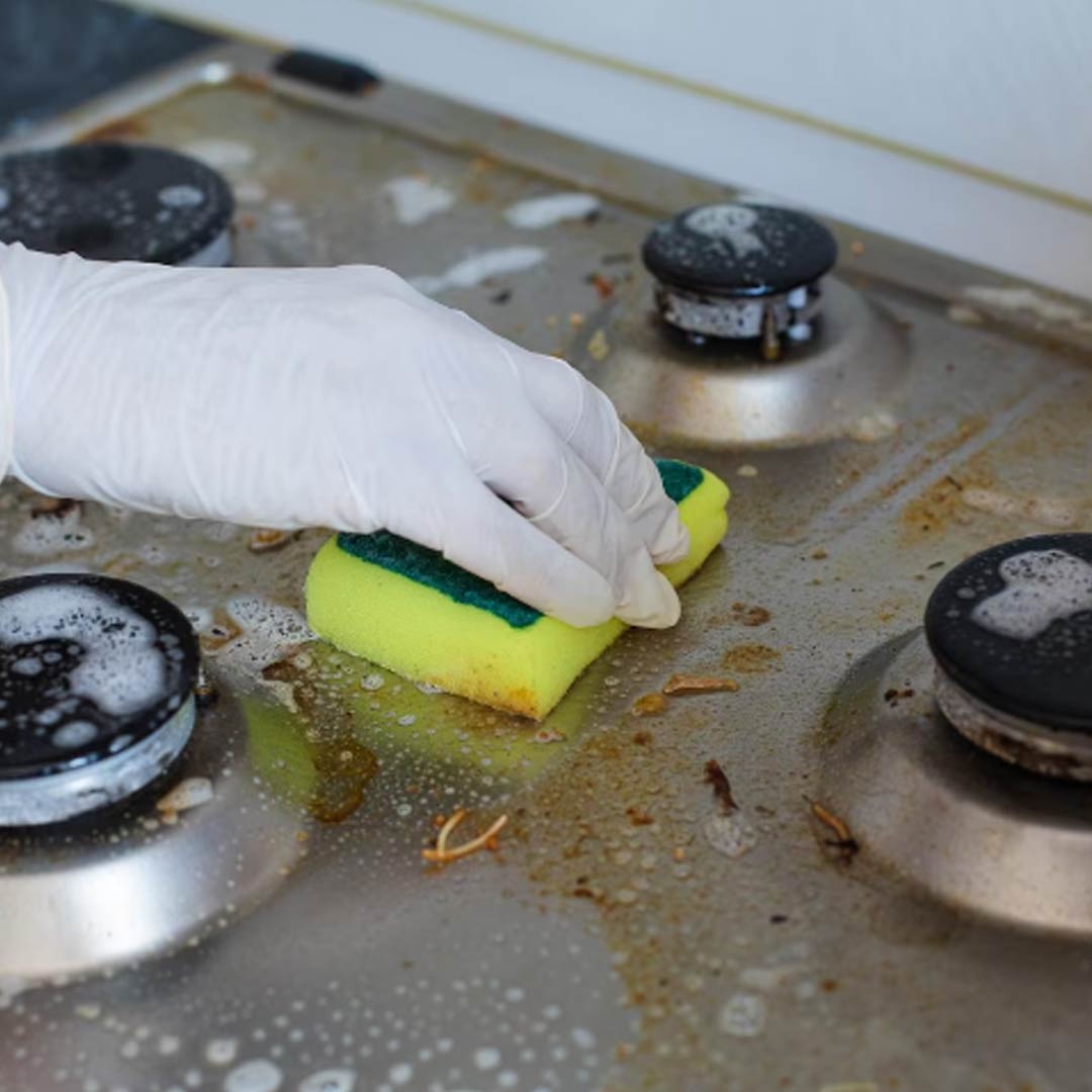 베이킹 소다는 오븐이나 가스레인지의 상판에 묻은 기름얼룩을 청소하는 데 효과가 있습니다.
